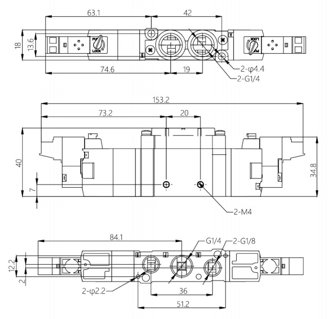 | 接管口徑 | 進氣口=工作口=排氣口=M5 | 進氣口=工作口=排氣口=1/8 | 進氣口=工作口=1/4 | |