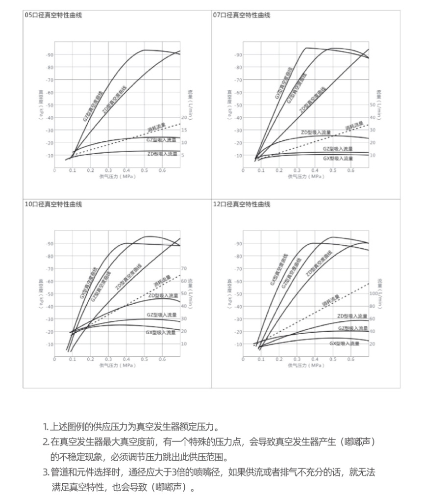 | 05 | 0.5mm* | -86.5Kpa 5.4L/min | -86.5Kpa 10L/min | ― | 12L/min |