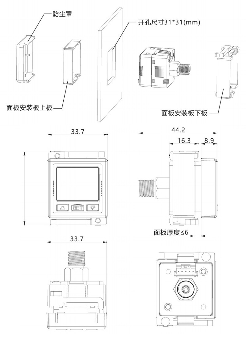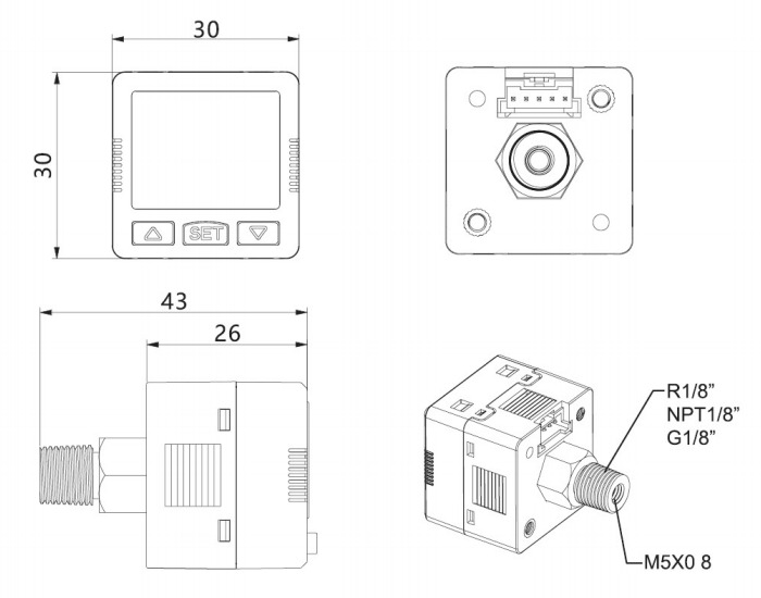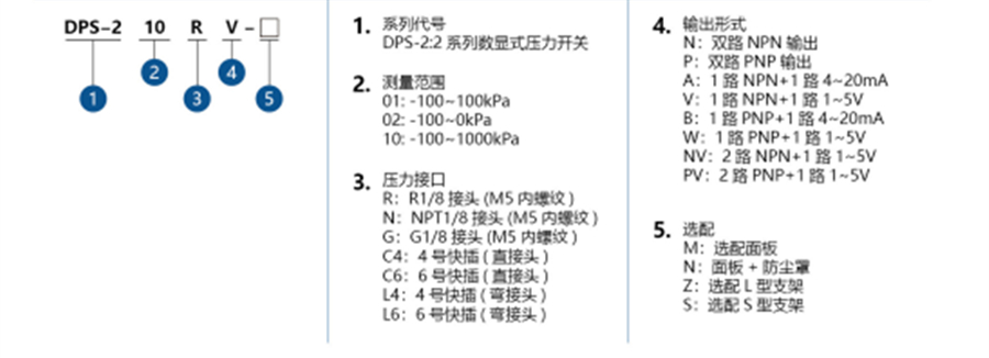 | 壓力接口 | 外螺紋R1/8、NPT1/8、G1/8可選,內螺紋M5 | |||