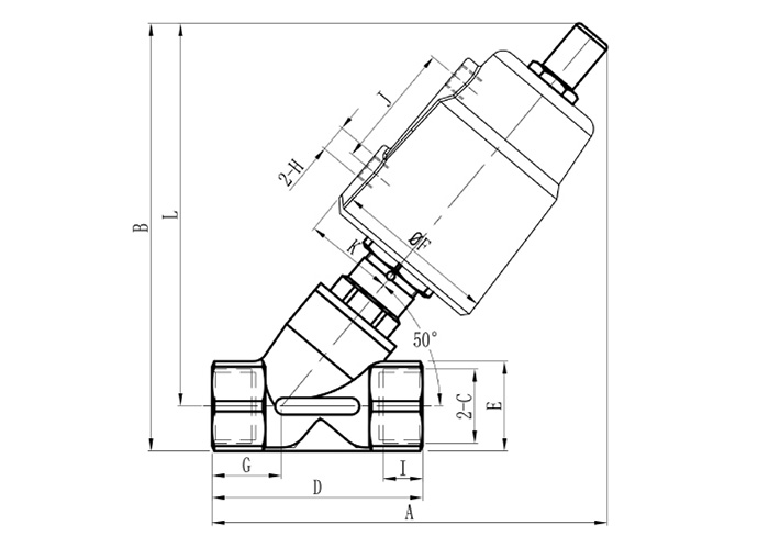 | 型號 | 流量通徑DN(mm) | 執行器規格 | A | B | C | D | E | F | G | H | l | J | K | L |