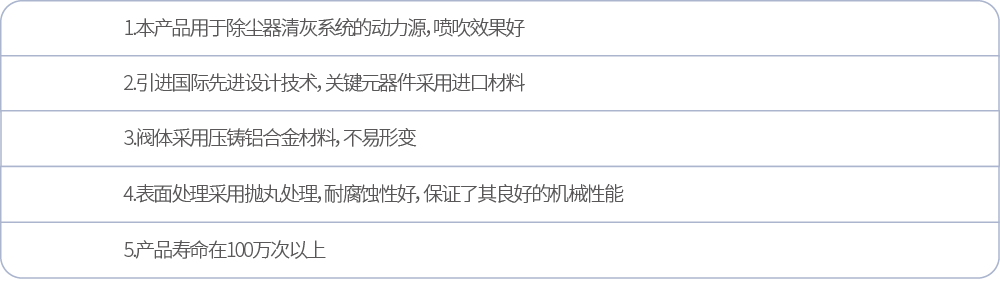 | 膜片壽命 | 噴吹100萬次以上 | |