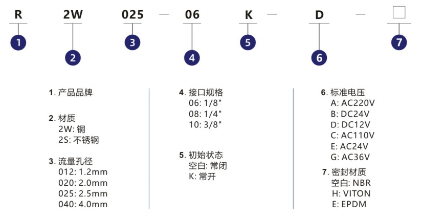 | R2W025-06 | 空氣 水 油 | 直動式 | 常閉式 | 2.5 | 0.23 | 1/8" | <20CST | 空氣 水 瓦斯 0~0.7 | 1.0 | -5~80 | DC12- 24V AC24V- 380V ±10% | 黃銅 不銹鋼 | 聚四氟 乙烯 | |