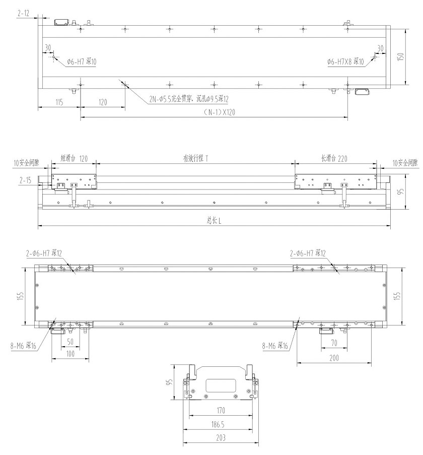| 導軌 | 標配:外嵌式雙導軌,上銀EGH15CA;其他需求可選配 |